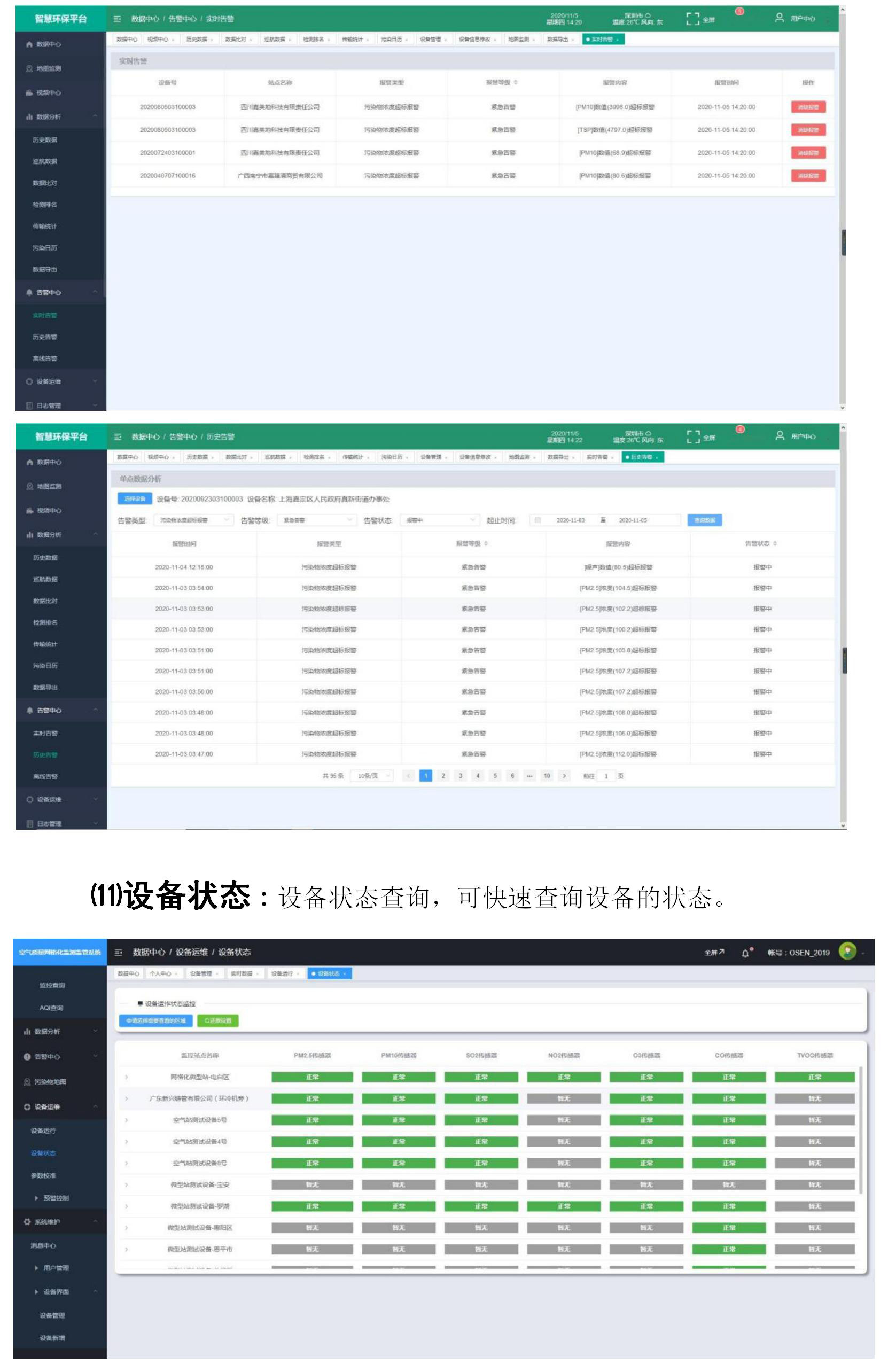 ⑾設(shè)備狀態(tài):設(shè)備狀態(tài)查詢,可快速查詢?cè)O(shè)備的狀態(tài)。